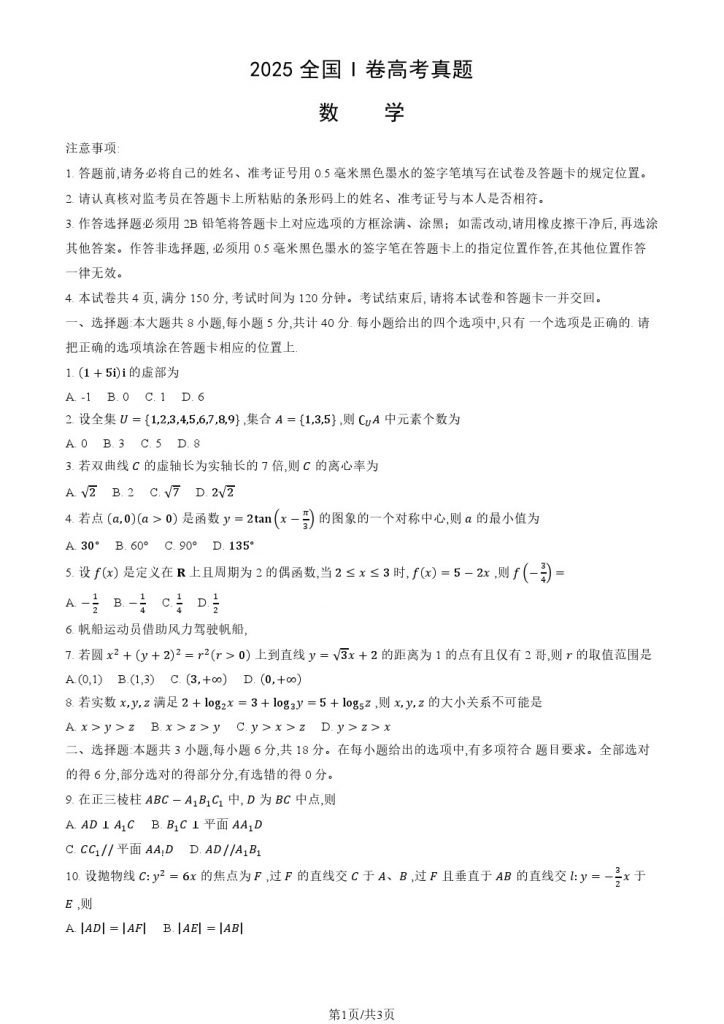 2025年全国各省市高考考试已结束,admw360教研组整理了2025全国高考1卷数学试题及答案,详情如下: