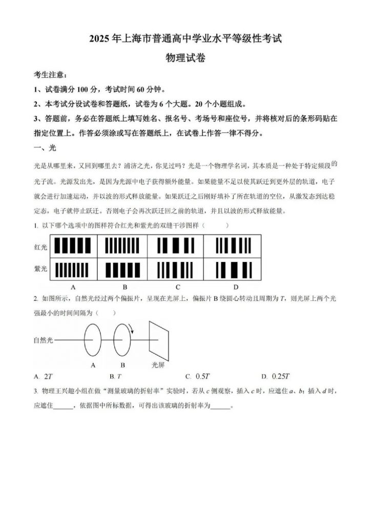 2025年全国各省市高考考试已结束,admw360教研组整理了2025上海高考物理试题试题,详情如下: