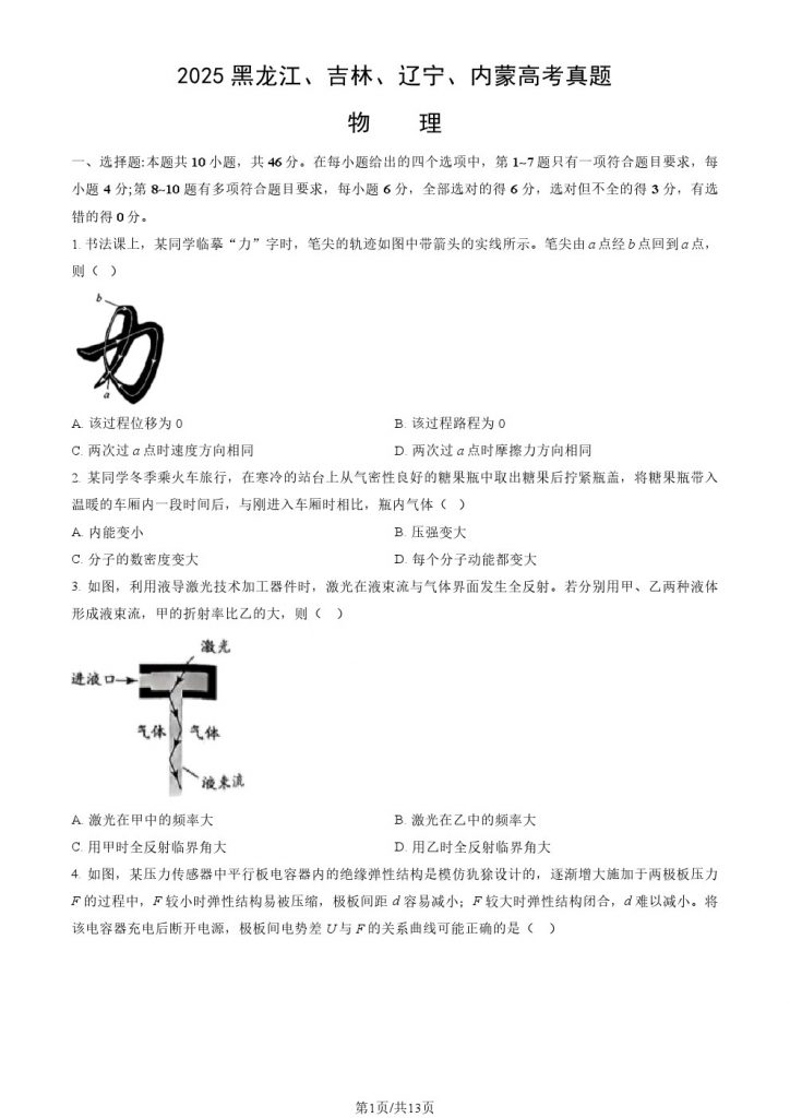 2025年全国各省市高考考试已结束,admw360教研组整理了2025(黑吉辽内)高考物理真题及答案,详情如下: