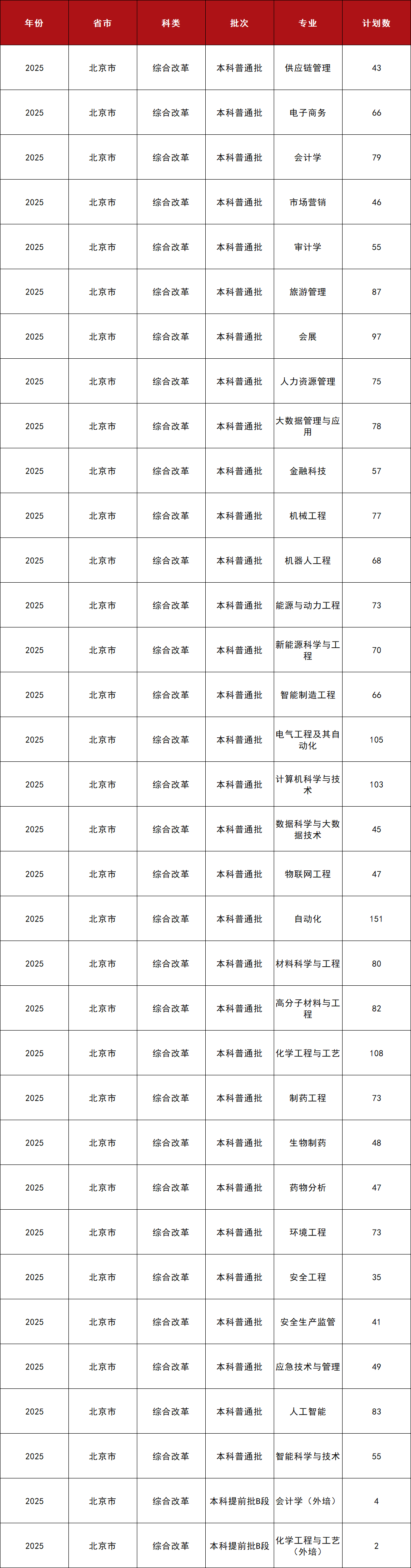 2025年全国各省市高考已结束,admw360教研组整理了北京石油化工学院2025在京招生专业计划 ,分享给大家,具体如下: