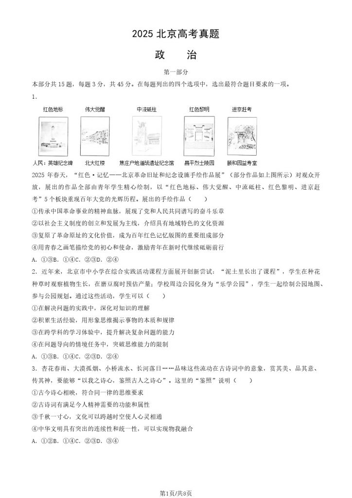 2025年全国各省市高考考试已结束,admw360教研组整理了2025北京高考政治真题及答案,详情如下: