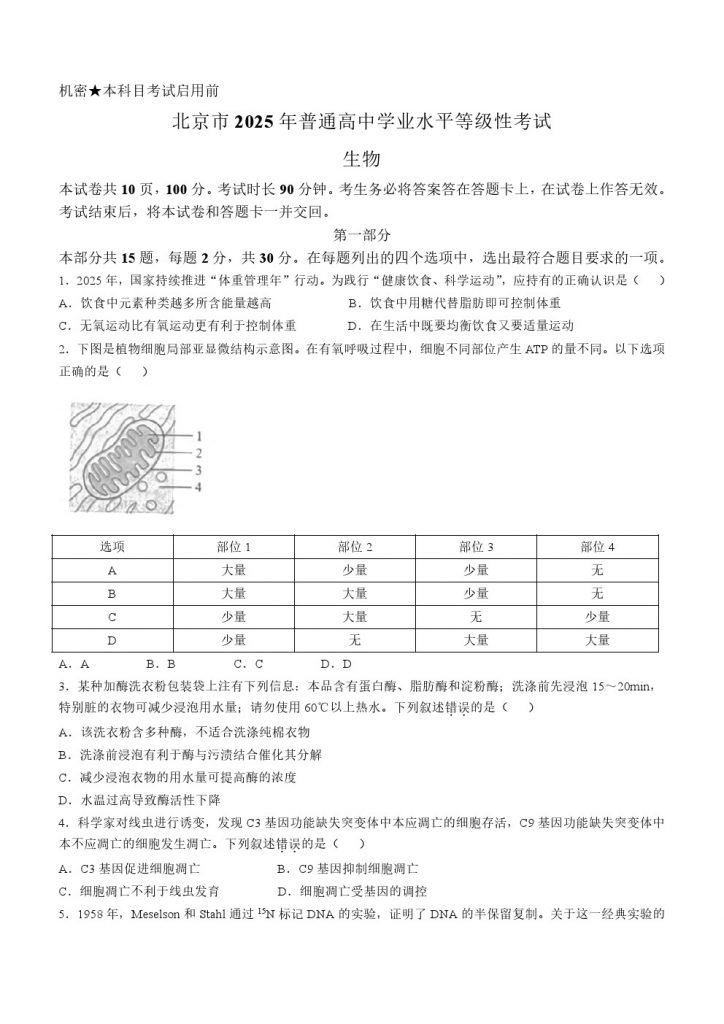 2025年全国各省市高考考试已结束,admw360教研组整理了2025年北京生物高考真题,详情如下: