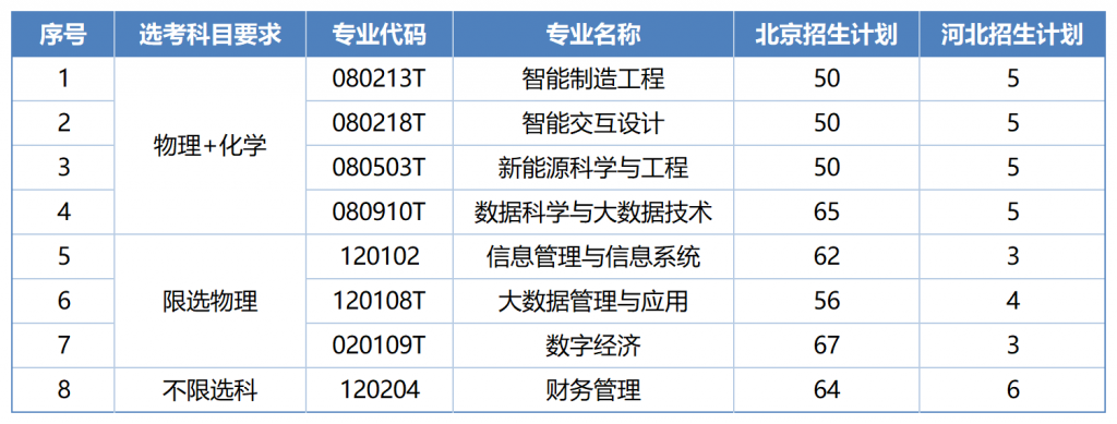 北京信息科技大学(张家口)天枢书院2025年在京招生计划