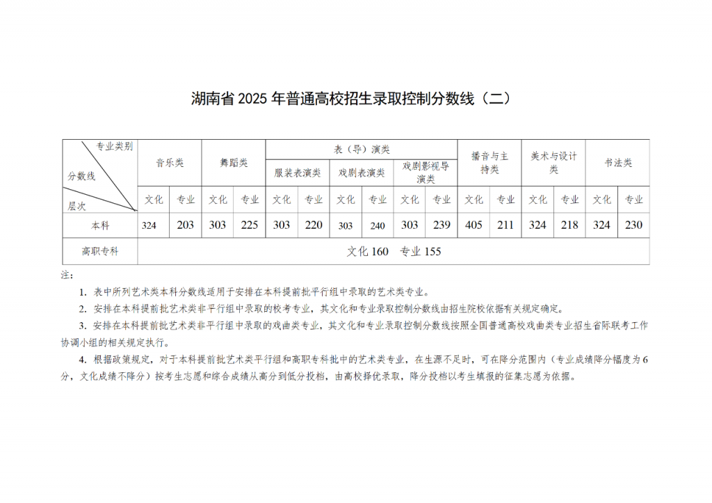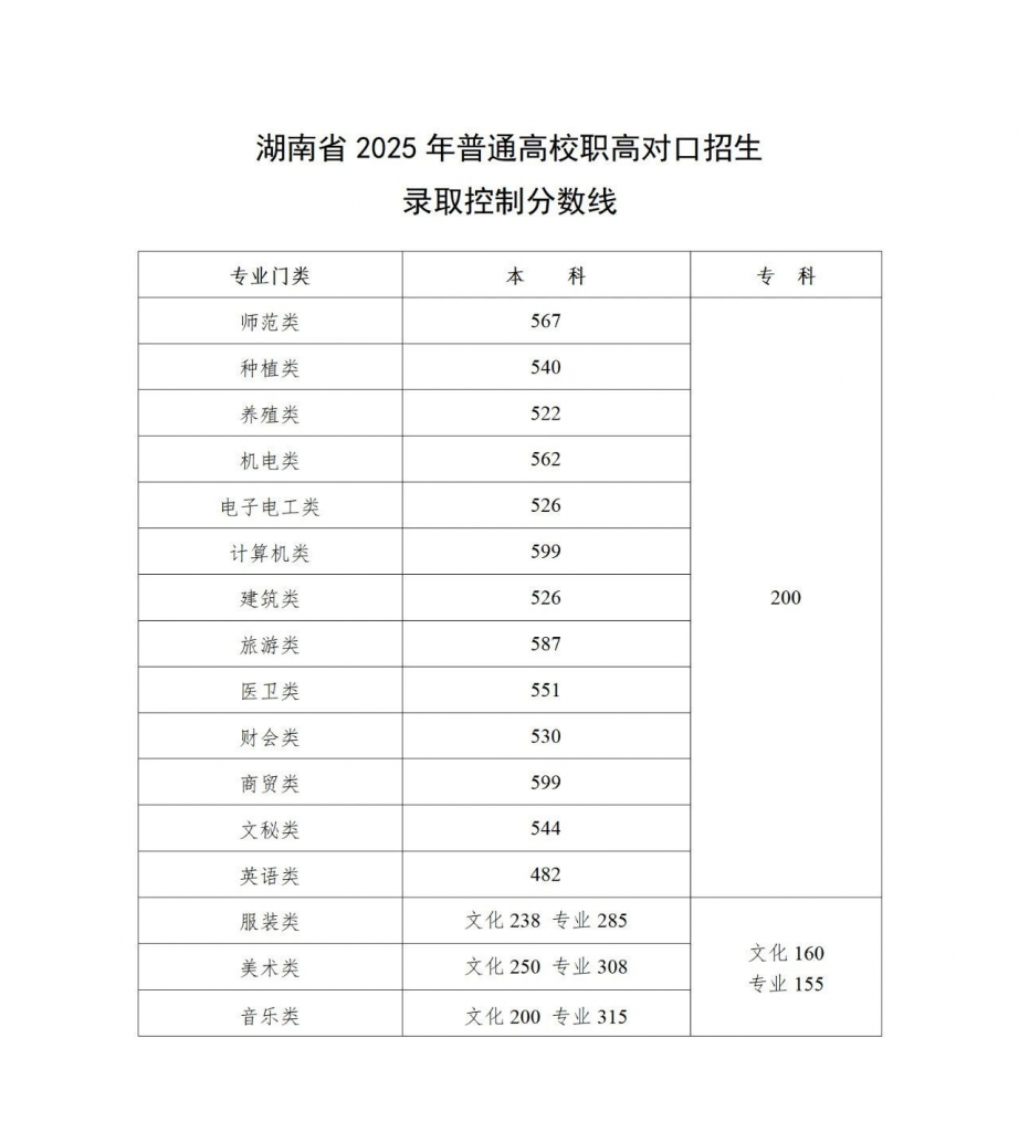 2025年湖南高考各批次录取控制分数线