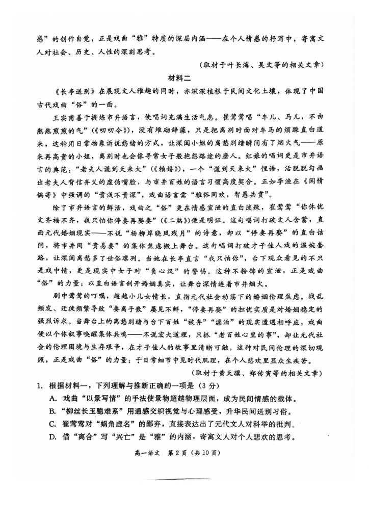 2025年北京各区高一(下)期末考已陆续开始进行,admw360教研组整理了2025北京东城高一(下)期末语文试题,分享给大家。