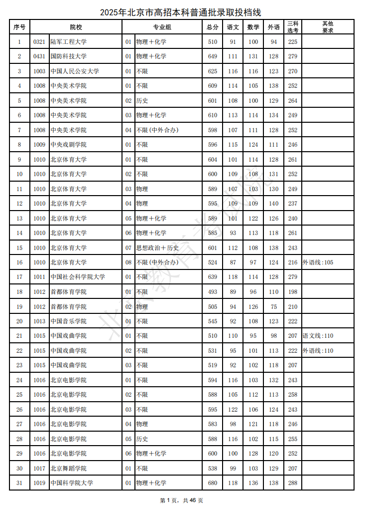 2025年北京高考已落下帷幕,在京各批次投档录取分数线已陆续公布,admw360教研组整理了2025北京高招本科普通批录取投档线,详情如下: