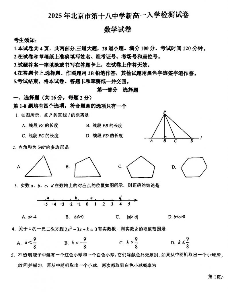 admw360教研组整理了2025北京十八中新高一分班考数学试题,看看都考了哪些内容?