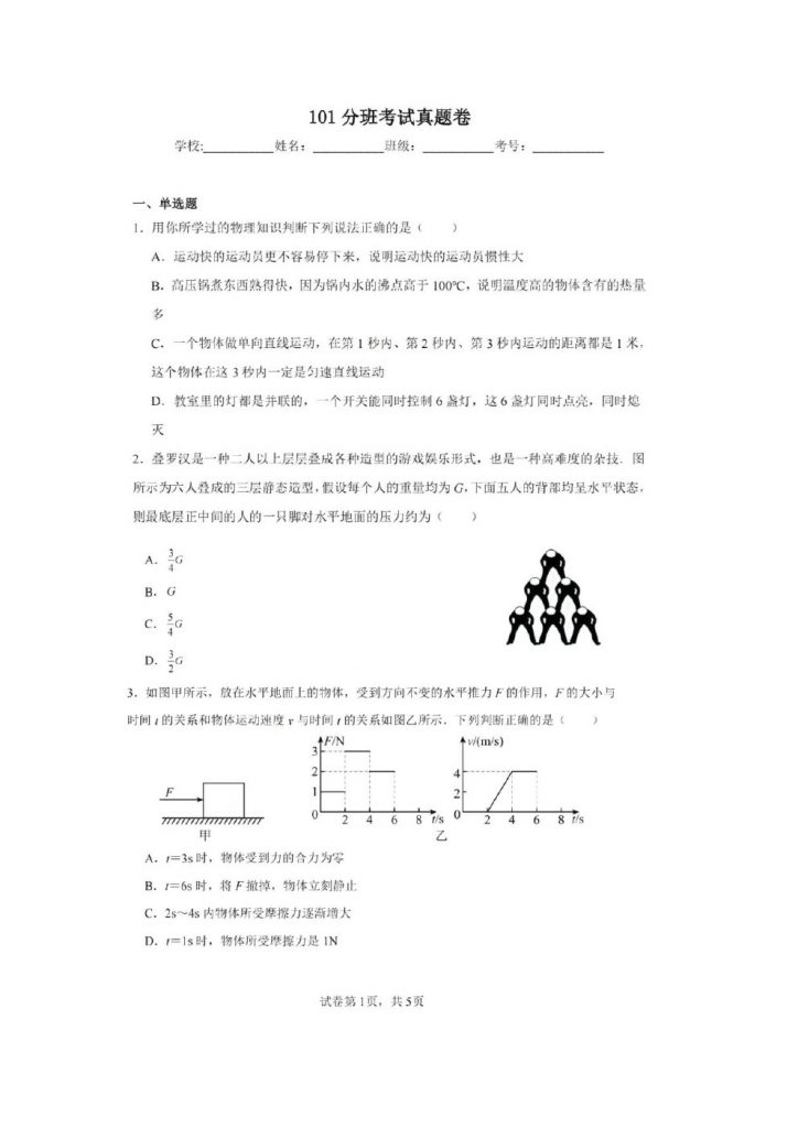 admw360教研组整理了2025北京101中学高一分班考物理试题,看看都考了哪些内容?