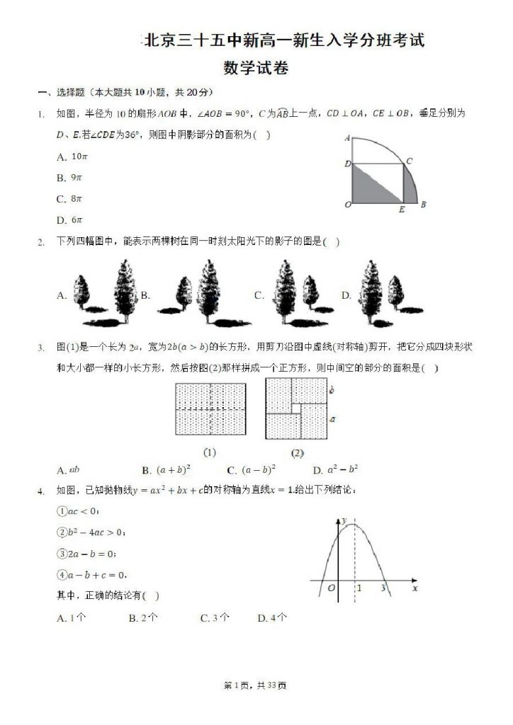 admw360教研组整理了北京三十五中高一分班考试数学试题及答案,看看都考了哪些内容?