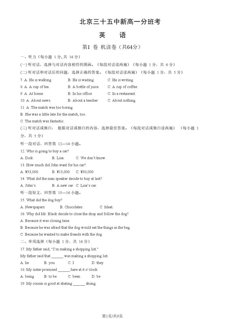 admw360教研组整理了北京三十五中新高一分班考英语试题及答案,看看都考了哪些内容?