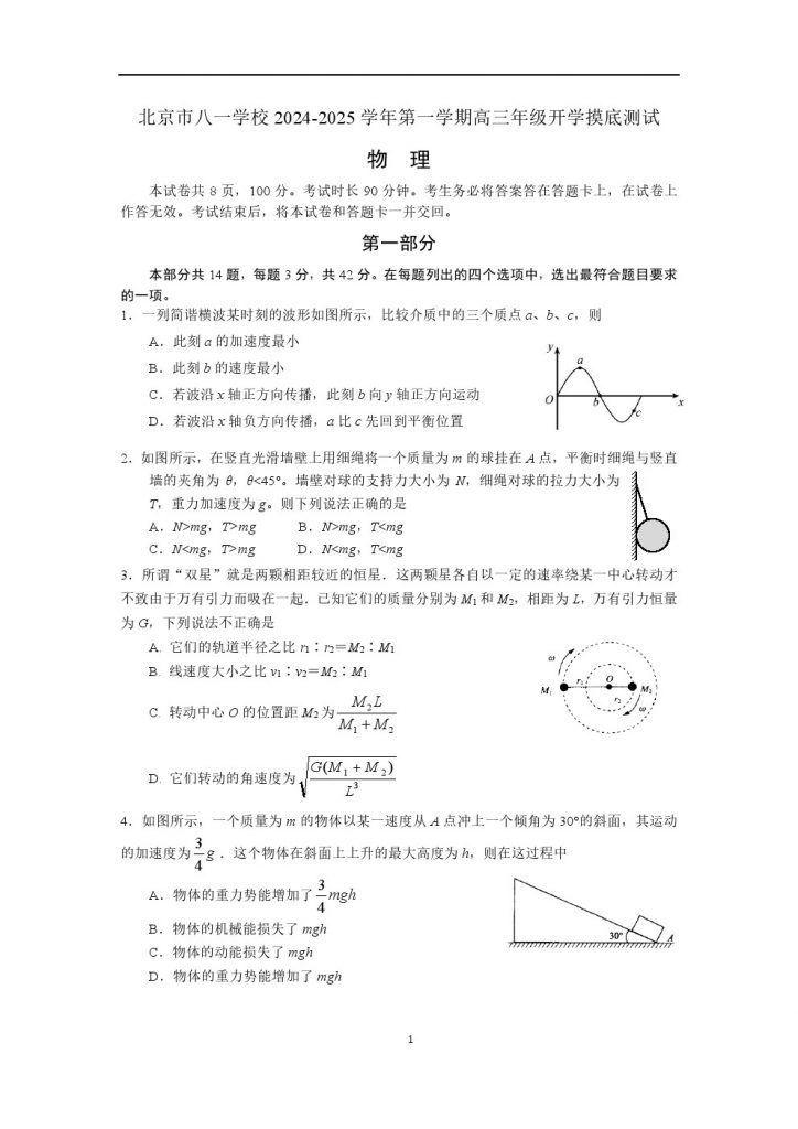 admw360教研组整理了2024北京八一学校高三年(上)开学考物理试题及答案,看看都考了哪些内容?