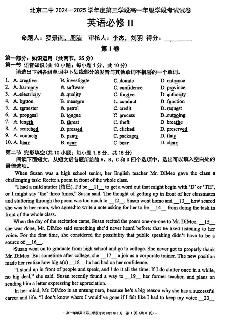 admw360教研组整理了2024北京二中高一(上)三学段段考英语试题及答案,看看都考了哪些内容?