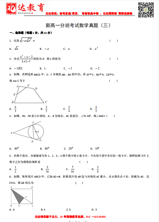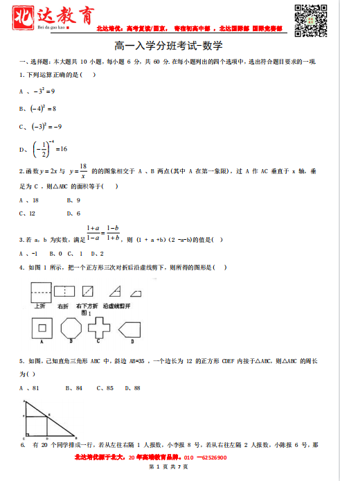 2023年北京高一开学考如期开考,admw360高考复读学校整理了部分试题考卷与答案,供各位考生参考,点击下方链接还可以下载电子版。