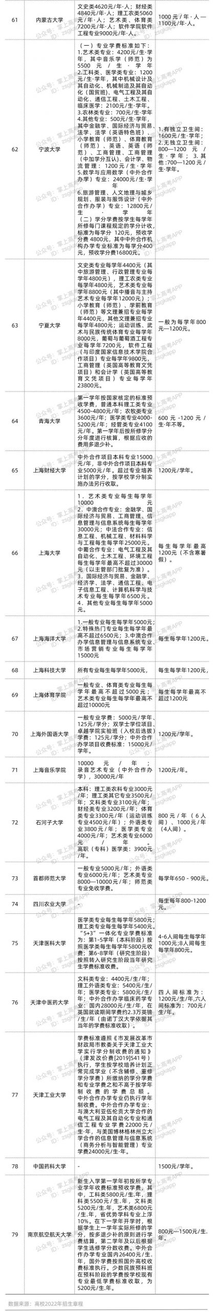 注:本文学费及住宿费是从高校2022年招生章程中摘取,如果高校有最新通知内容,请以最新信息为准。因涉及内容较多,如出现别差,请以高校发布的通知为准。
