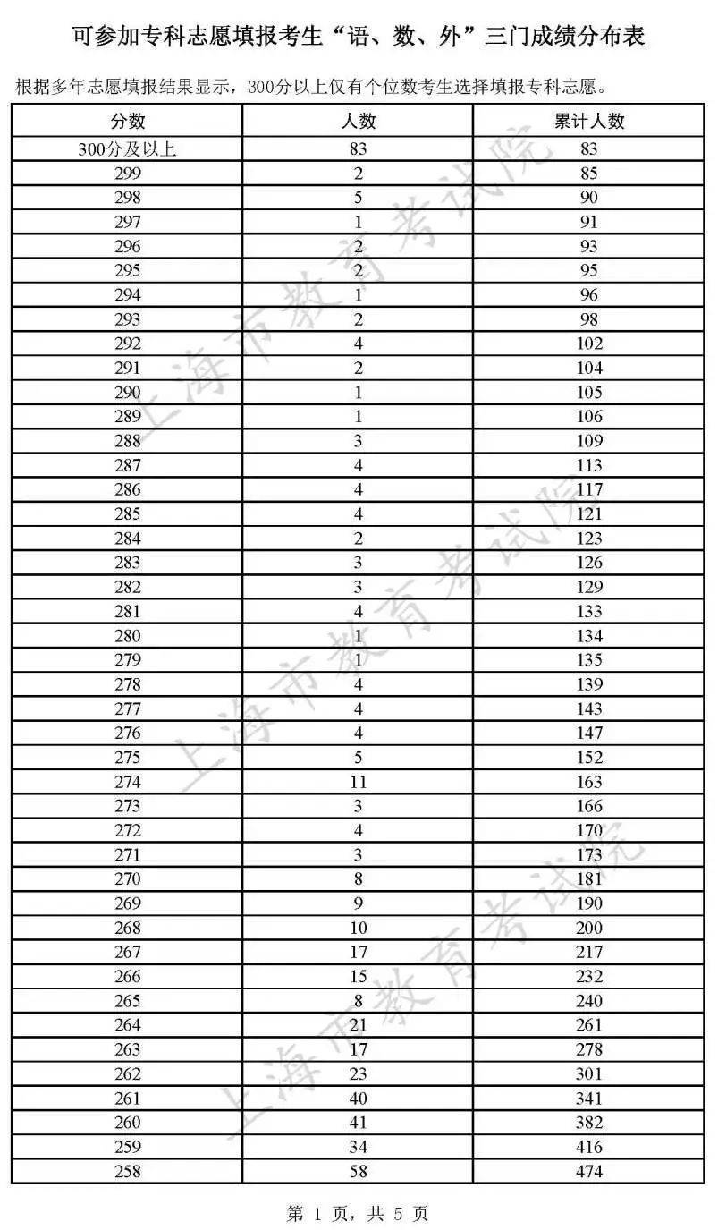 市教育考试院提供相关考生成绩分布表,供考生填报参考
