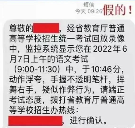 请各位高考生及家长注意,凡是收到招生办的电话或是短信,称考生存在作弊行为的,请第一时间和就读学校联系,确认信息的真实性!