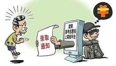 不法分子冒充高校招生办人员,让考生将学杂费打入指定的银行账号,以骗取钱财。考生和家长要通过官网认证的链接或学校、教育部门官方发布的网址进入,转账汇款时要通过多种途径核实账号真伪。