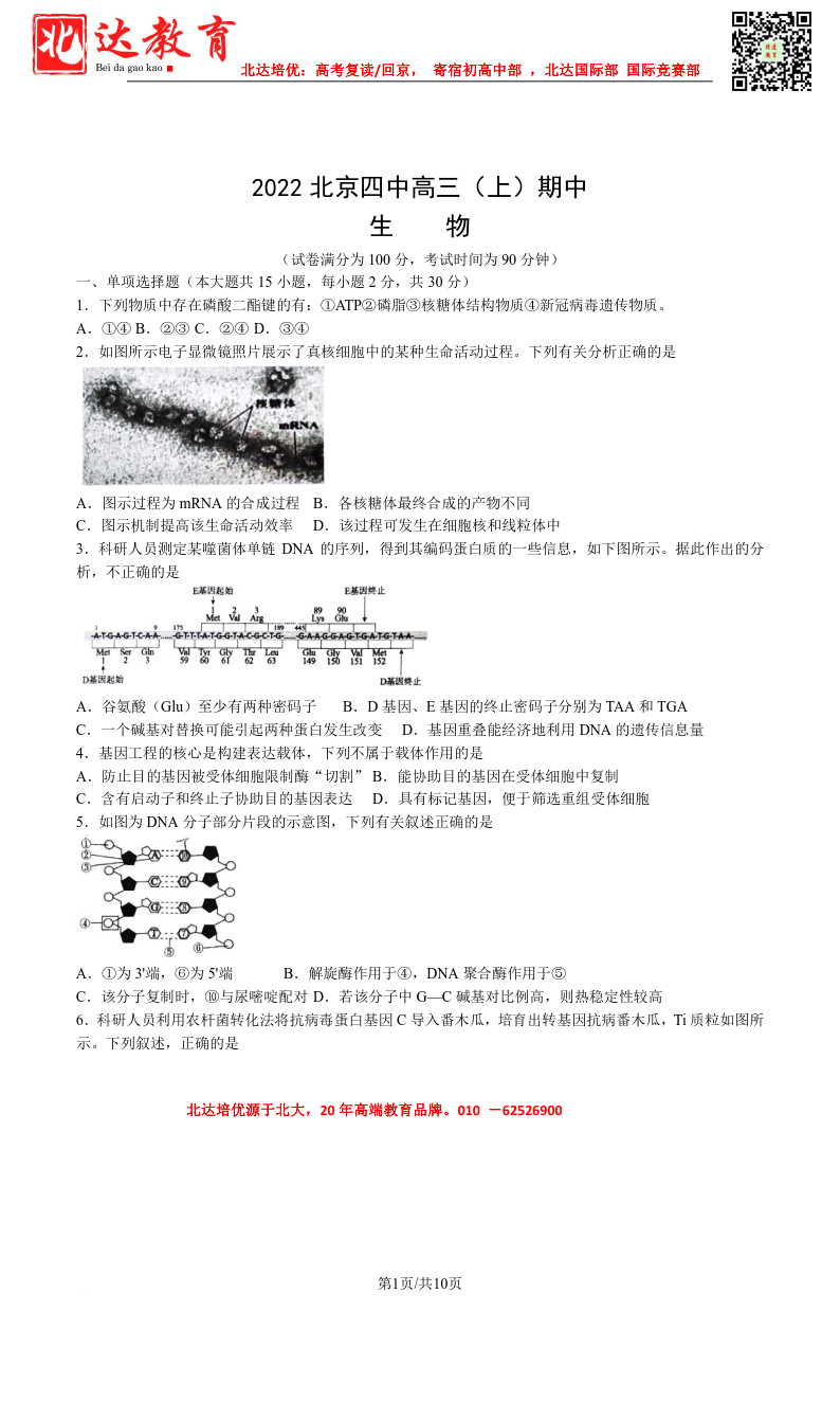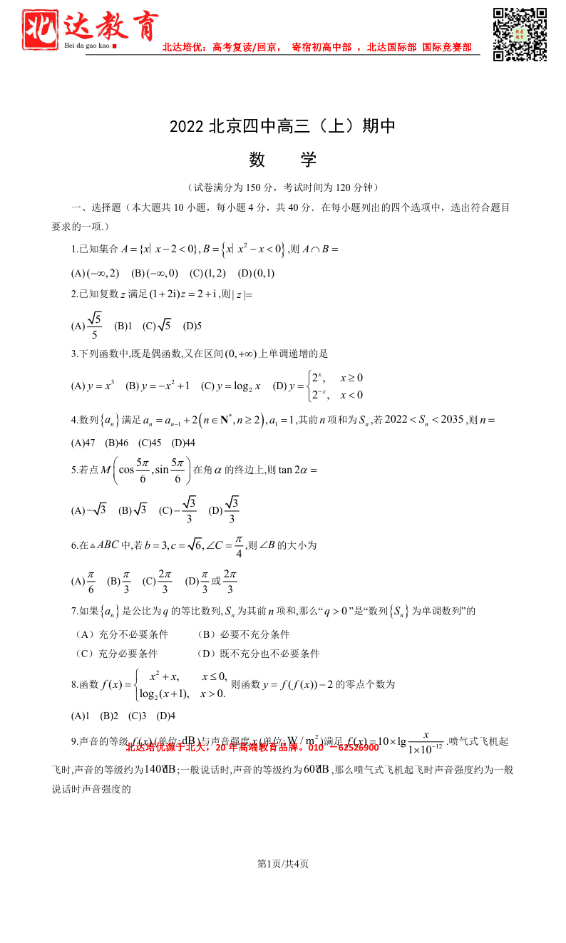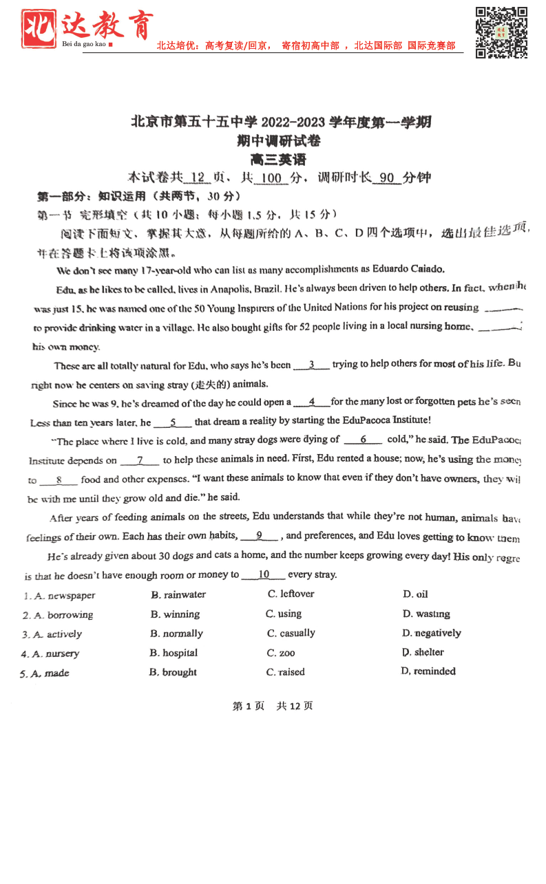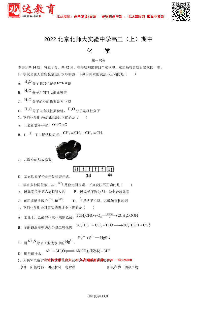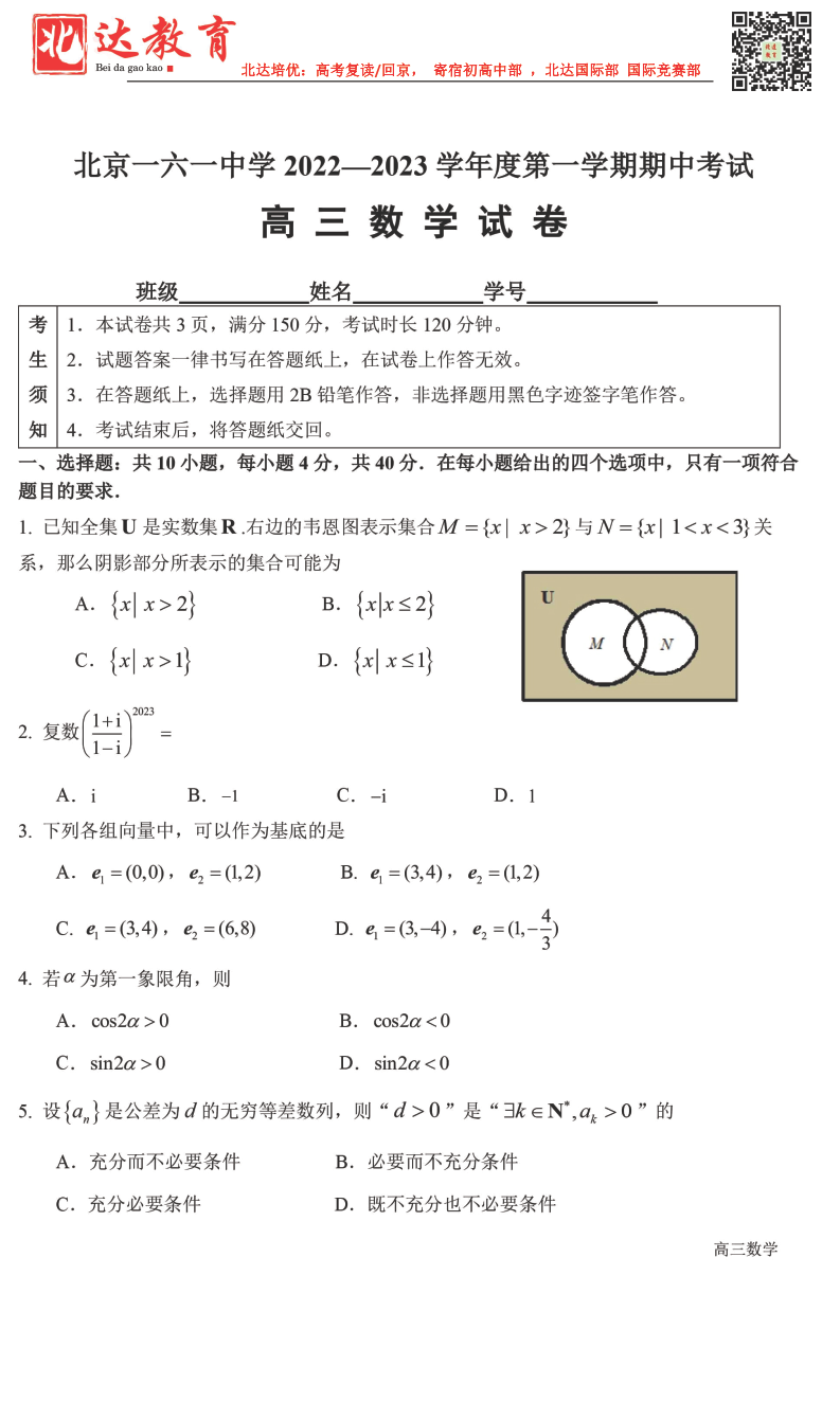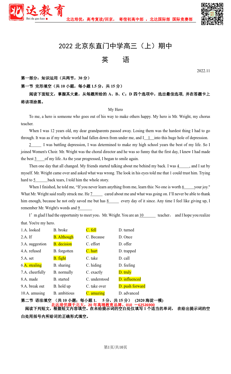 相关链接:北京市2022-2023学年高二第一学期期中试题及答案汇总
