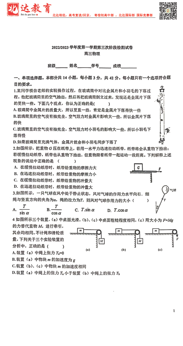 2023年人大附中高考物理一轮复习课时练习册43套(含答案详解)