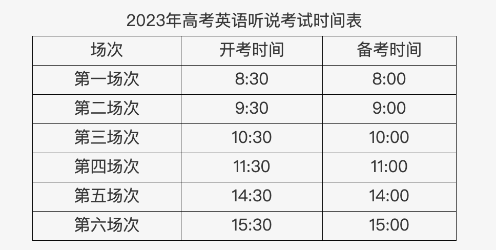 2023年高考英语听说考试相关日程安排表 |