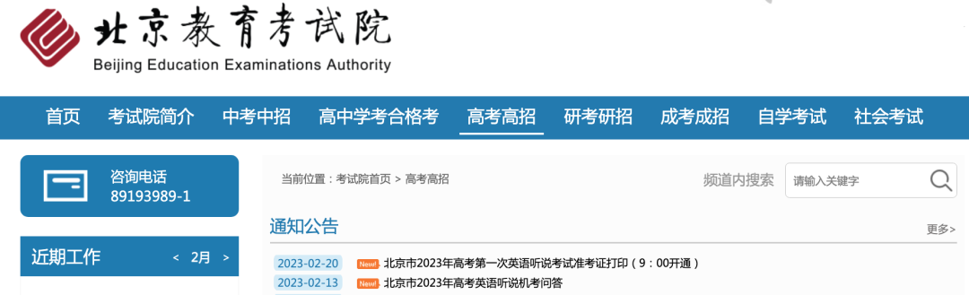| 2023年2月20日至2月25日 | 考生通过北京教育考试院网站自行打印第一次英语听说考试准考证 |