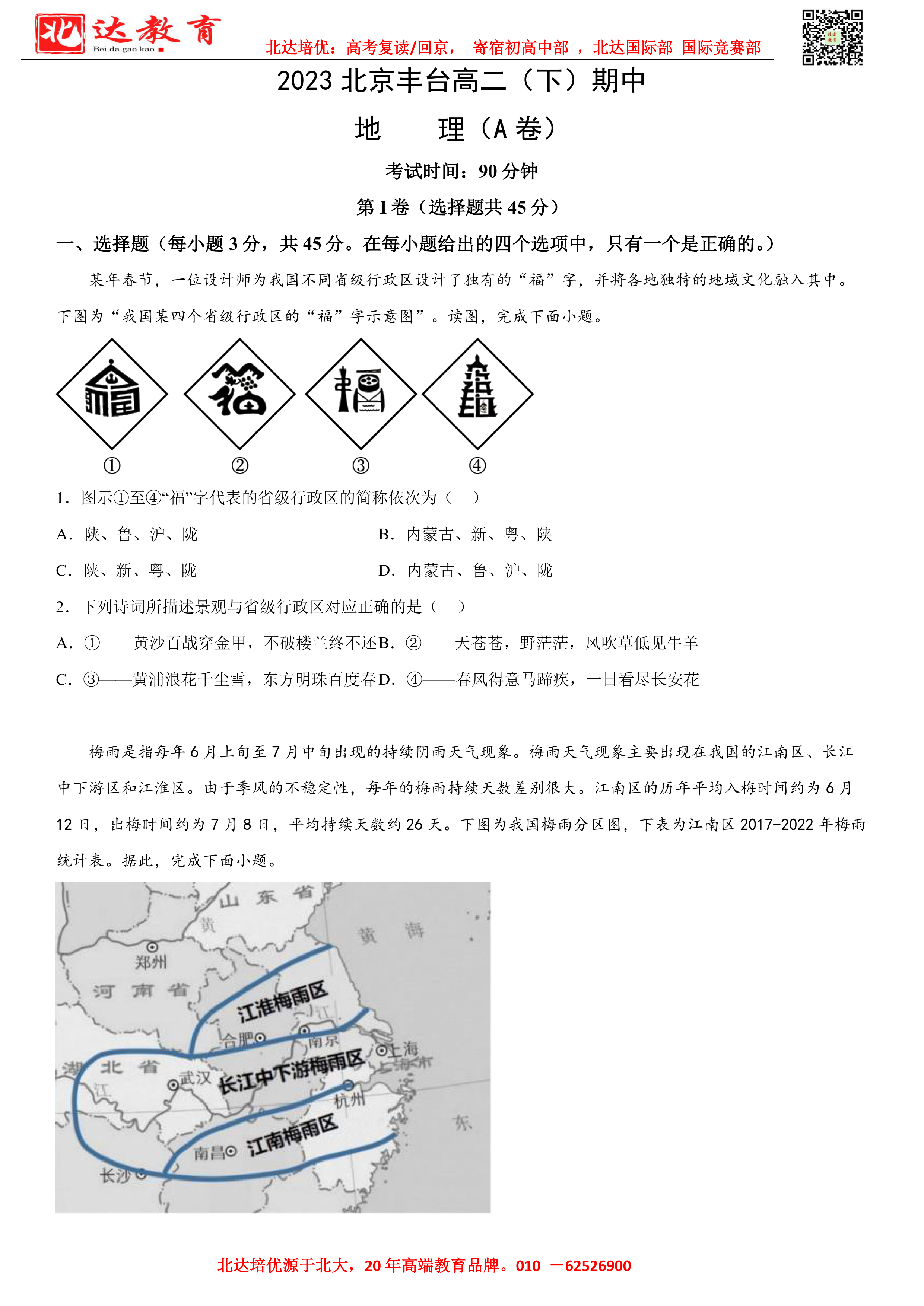 相关阅读:北京市各区2022-2023学年高二下学期期中试题及答案汇总