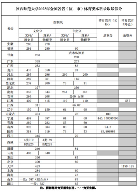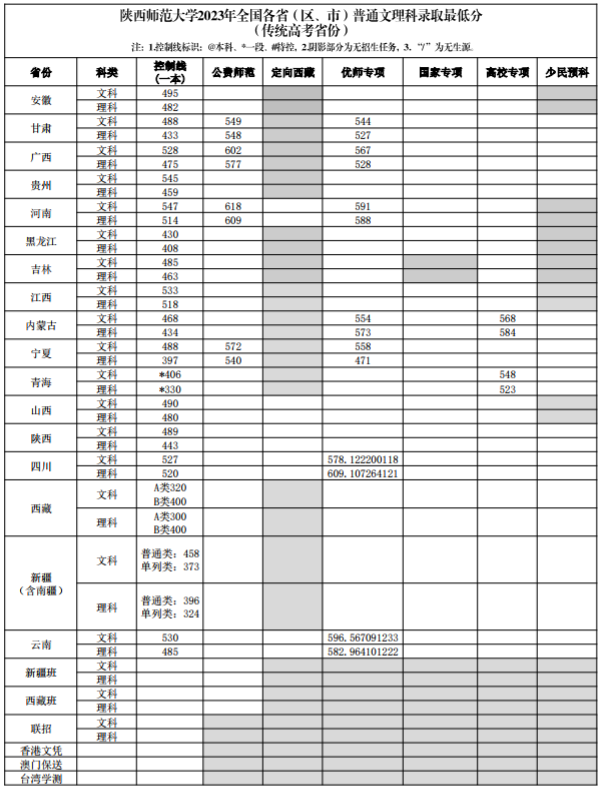 2023年陕西师范大学高考普通文理科、体育类录取最低分数线
