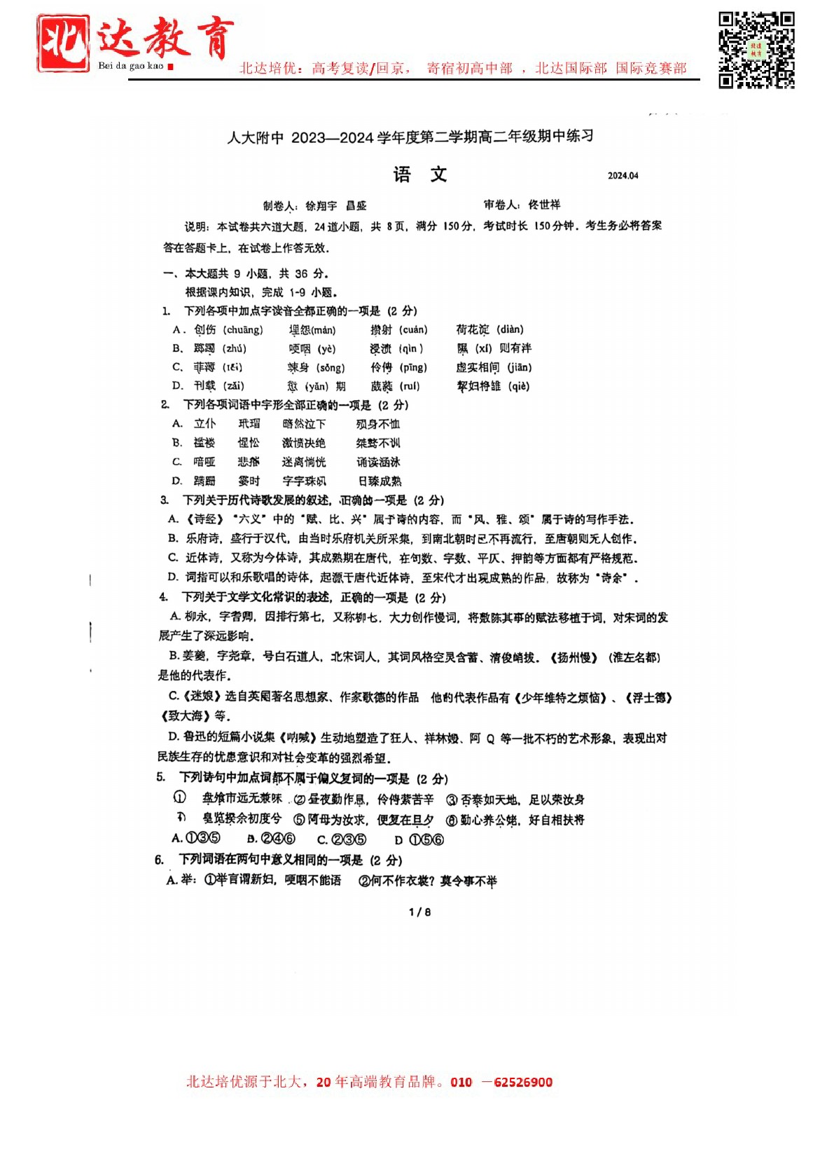 2024北京人大附中高二(下)期中语文试卷 //www.admw360.com/gaokao/67737.html Mon, 13 May 2024 09:08:14 +0000 //www.admw360.com/gaokao/?p=67737 2024年北京人大附中高二(下)期中开考,admw360教育整理了2024北京人大附中高二(下)期中语文试卷,分享给同学们。