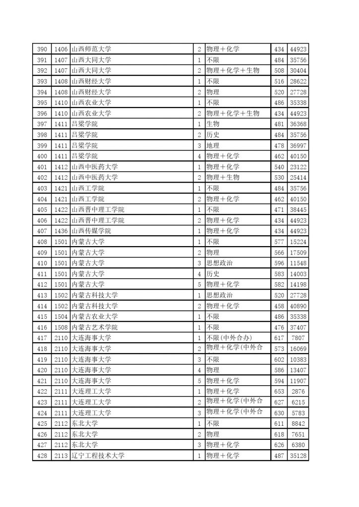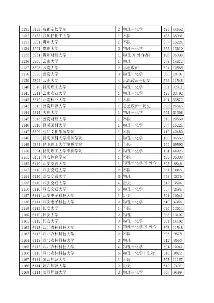 | 显示年份 | 省份 | 科类 | 计划类型 | 选考科目 | 最低分 |