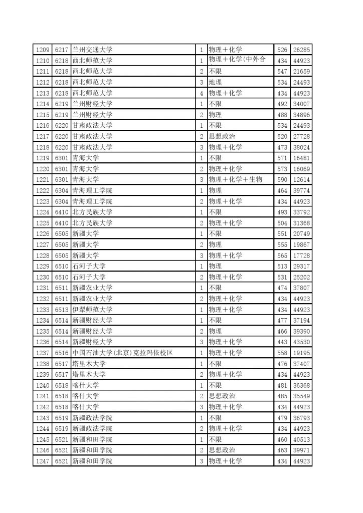 ]]>| 显示年份 | 省份 | 科类 | 计划类型 | 选考科目 | 最低分 |