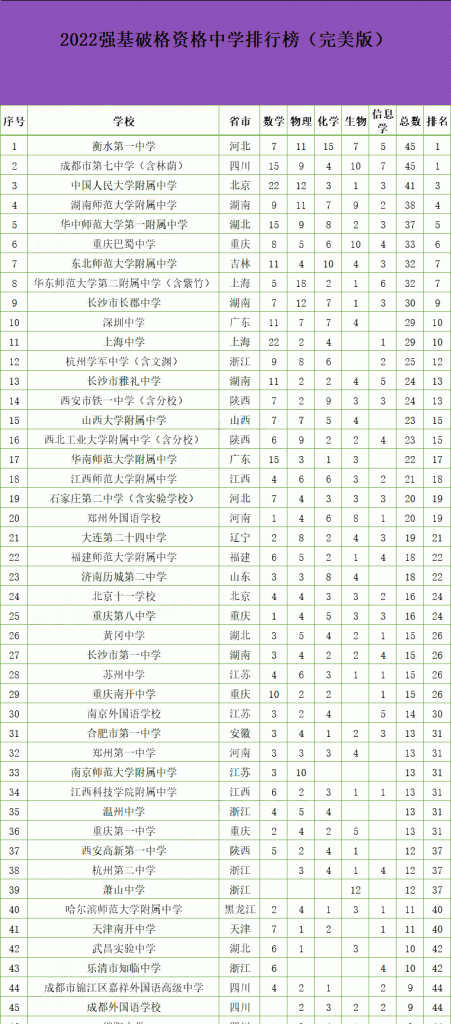 北京市2022强基计划破格资格中学排行榜出炉(附全国榜)!admw360中考复读学校教研组收集整理,分享给大家。