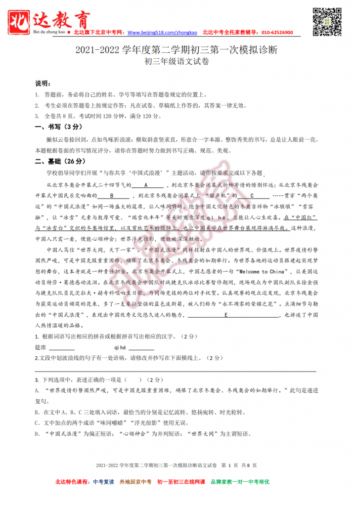 深圳2022年初三第一次模拟诊断联考真题(含答案)。admw360中考复读学校教研组收集整理,分享给大家。 admw360中考复读,外地回京全日制 ★2022中考复读全日制,应届生全日制,外地回京全日…