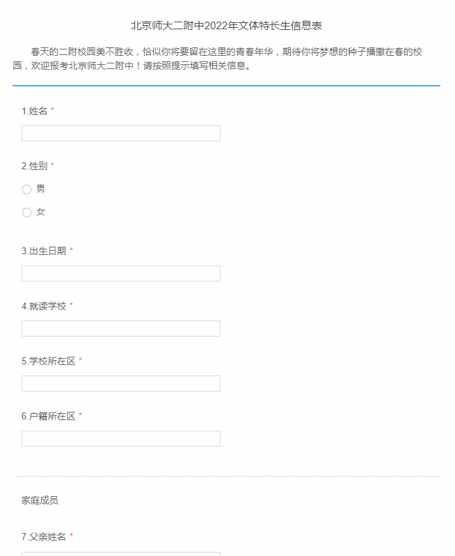 https://www.wenjuan.com/s/eM3AjmTI/#《北京师大二附中2022年文体特长生信息表》