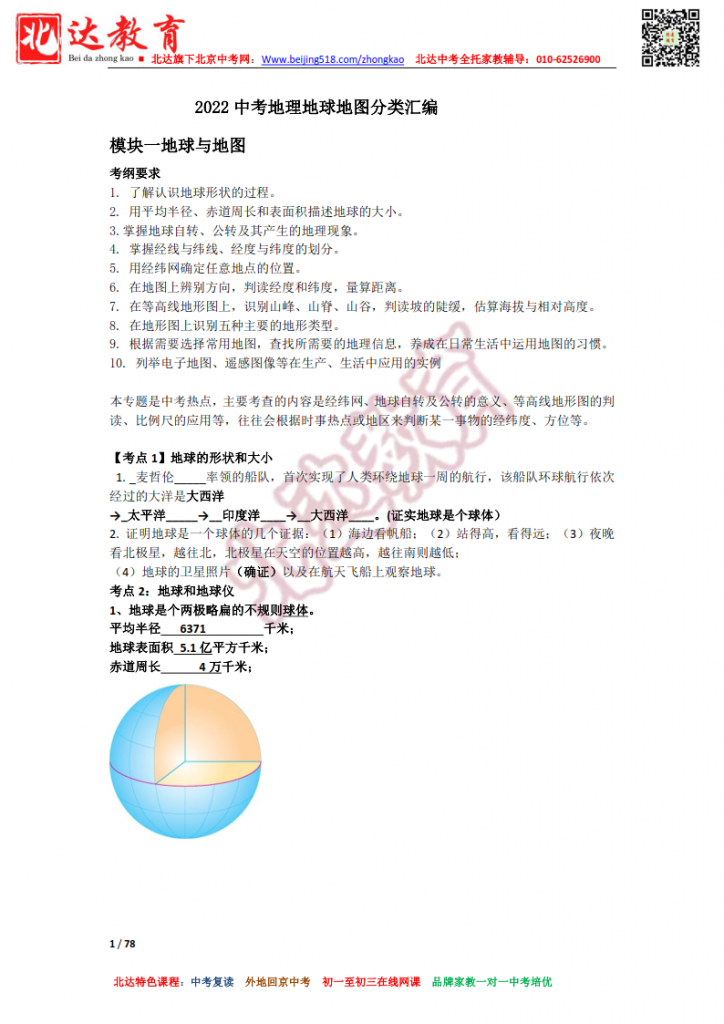 2022北京中考地理地球地图分类汇编。admw360中考复读学校教研组收集整理,分享给大家。