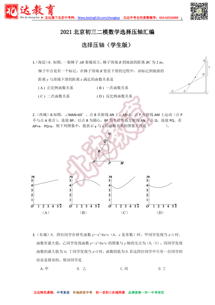 2021北京各区中考二模数学选择压轴汇编(教师版)