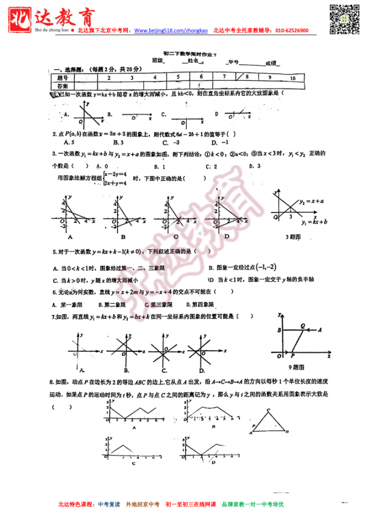 人大附中朝阳分校202204初二数学限时作业试题及答案。admw360中考复读学校教研组收集整理,分享给大家。