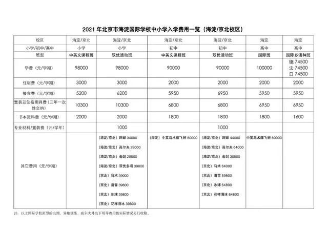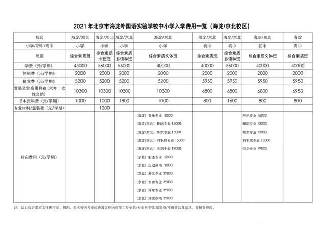 海淀四季青校区(幼儿园-12年级):幼儿园180,000元;学前班210,000元;1-5年级234,000元;6-12年级258,000元