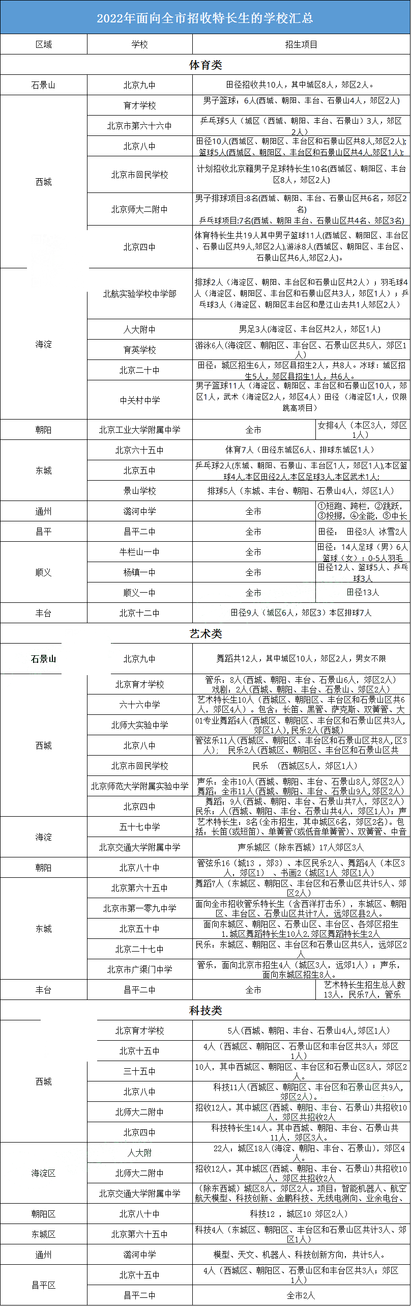 面向全市招生的特招生招生学校有哪些? 北京admw360教研组整理分享相关信息,供大家参考。