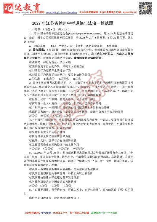 2022年江苏中考一模道德与法治试题及解析汇总。admw360教研组收集整理,分享给大家。