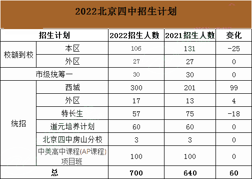 一是提醒西城区的考生,四中今年的西城区校额到校106人,相比较于去年有所减少,请一心想报考四中的学生一定要注意在填写校额到校志愿时想清楚,第一志愿肯定填写四中,如果在剩下的志愿填写了其他学校,一旦校额到校没有被四中录取,很可能就被其他学校录走了,不能再参加统一招生录取,其填报的统一招生志愿自动作废。这样,即使在统招志愿栏中第一志愿填报了四中,也没办法被录进四中。所以,这部分学生一定要注意填写志愿的技巧。