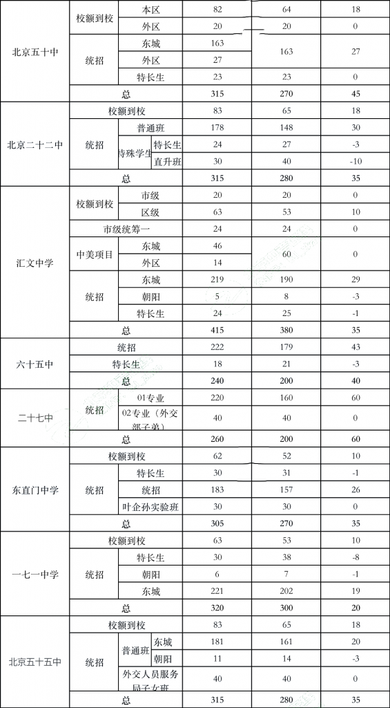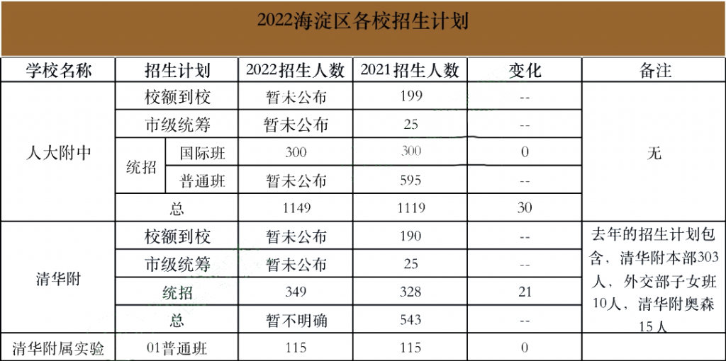 2、根据清华附在统招方面,主要是面向海淀区,比去年增加了40人,统招总计划达到349人,详细数据以2022招生简章为主。