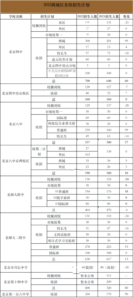 2、需要提醒目标校为月坛中学的考生,2022年月坛中学仅在提前招生批次中招生。