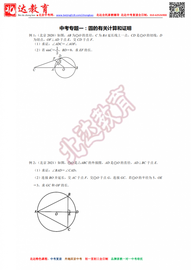 2022北京中考专题1:圆的有关计算和证明
