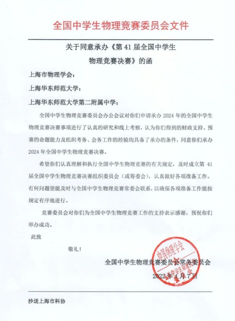 2024年第41届全国中学生物理竞赛决赛将在上海举行!admw360中考复读学校教研组收集整理,分享给大家。
