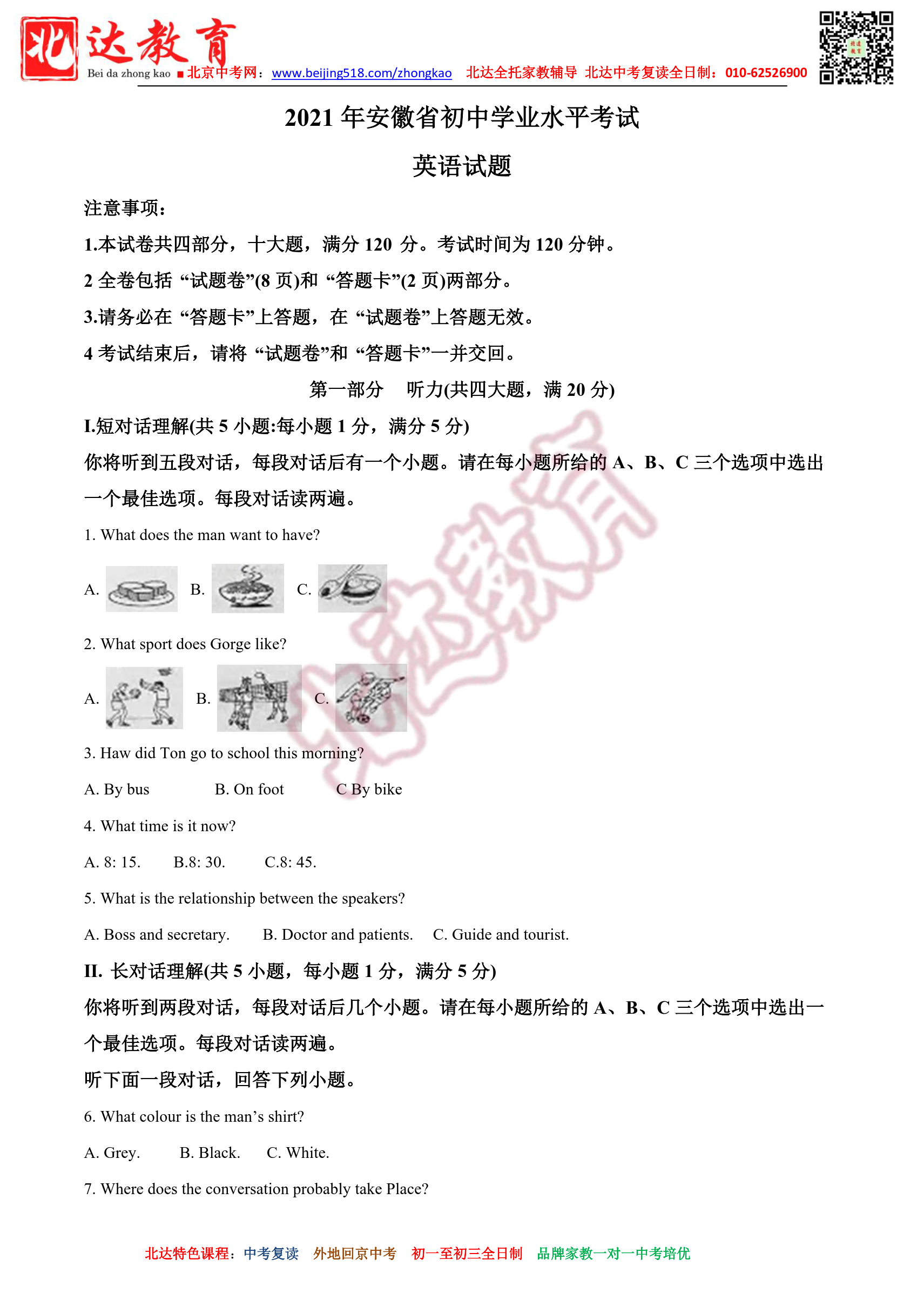 2021年安徽中考英语试题及答案汇总