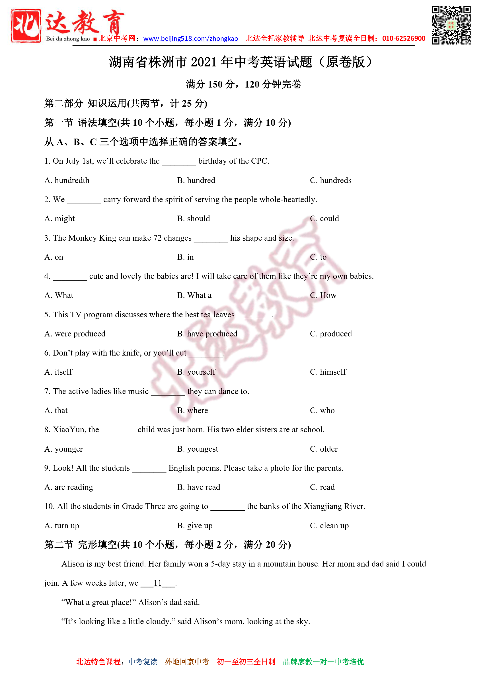 2021年湖南中考英语试题及答案汇总。admw360教研组收集整理,分享给大家。