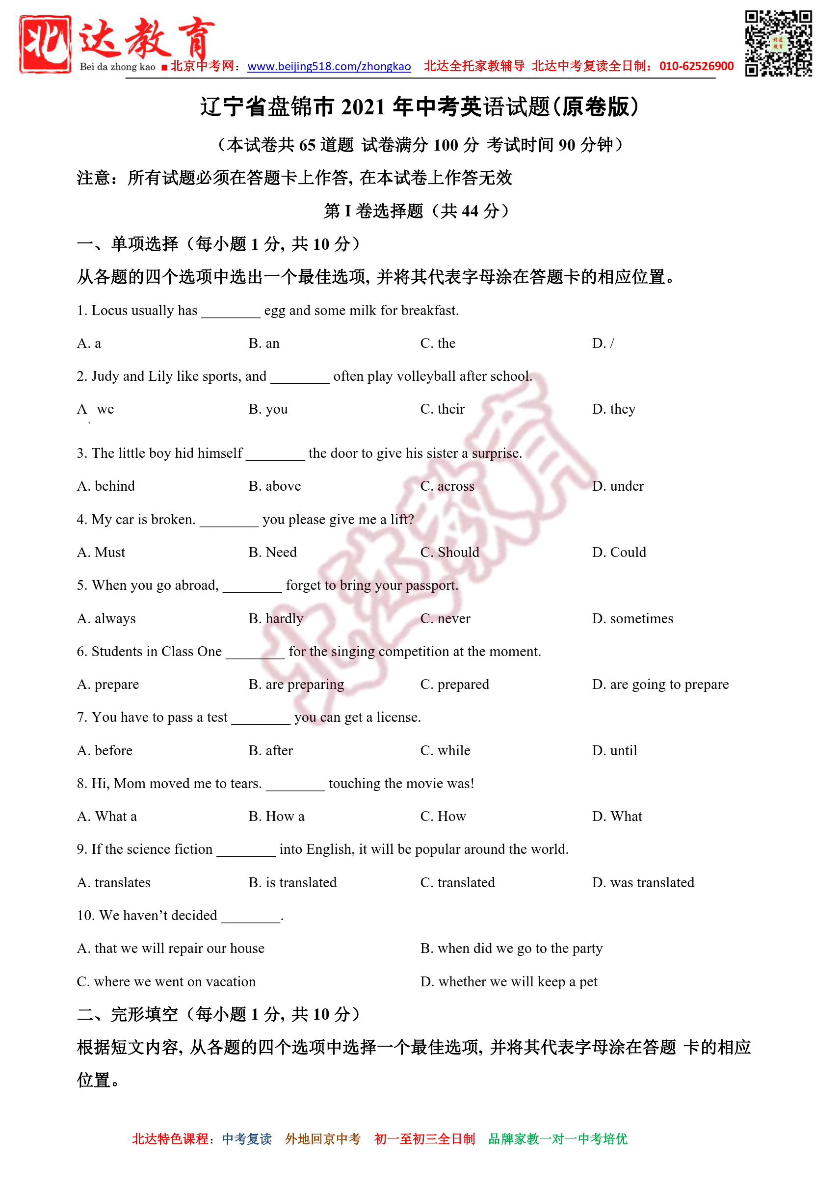 2021年辽宁中考英语试题及答案汇总。admw360教研组收集整理,分享给大家。