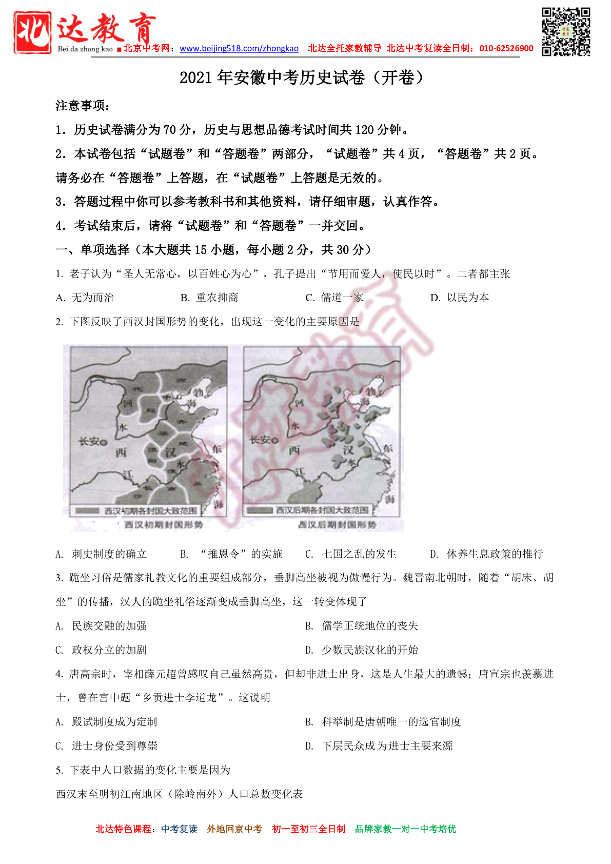 2021年安徽中考历史试题及答案汇总。admw360教研组收集整理,分享给大家。