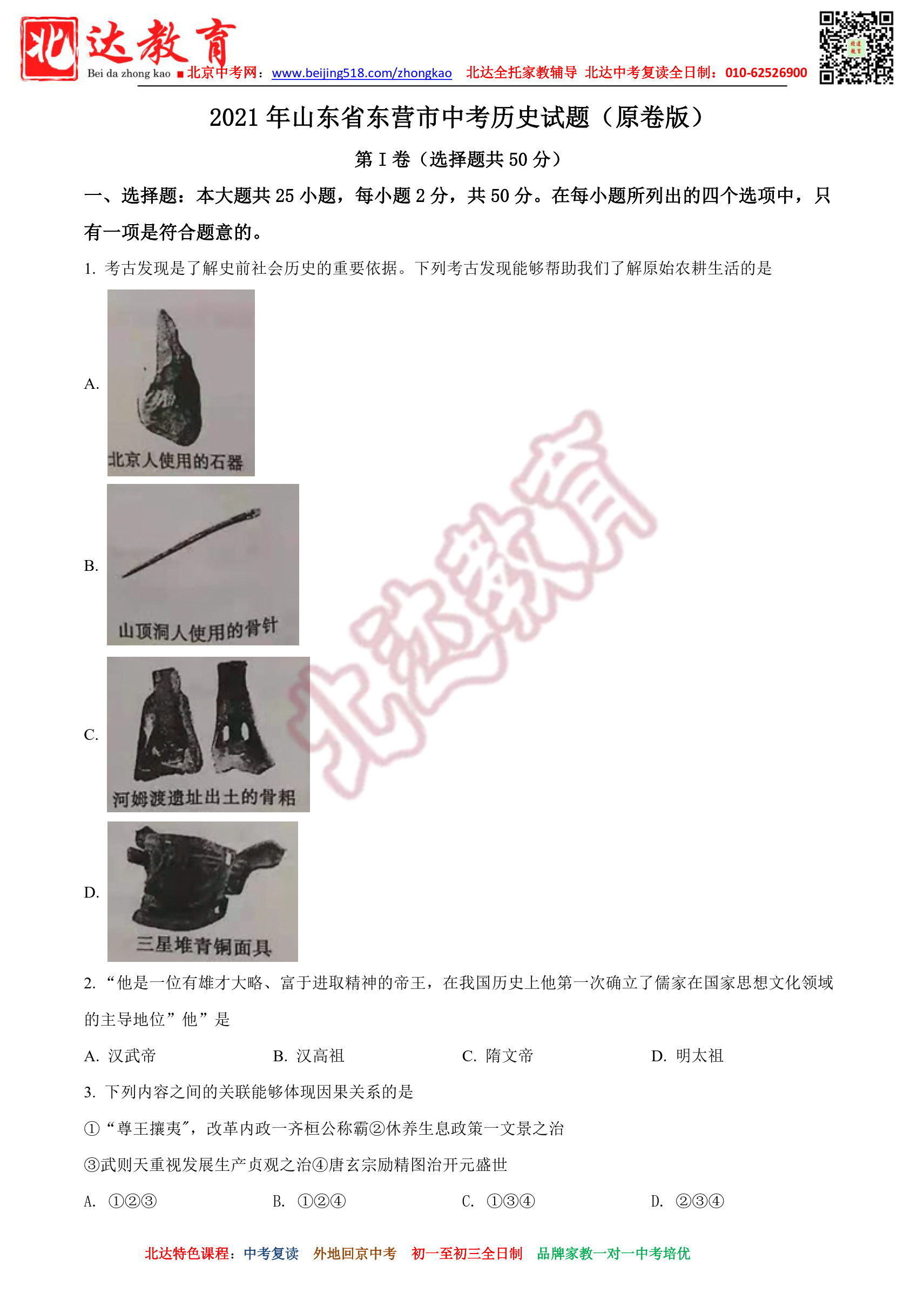 2021年山东中考历史试题及答案汇总。admw360教研组收集整理,分享给大家。