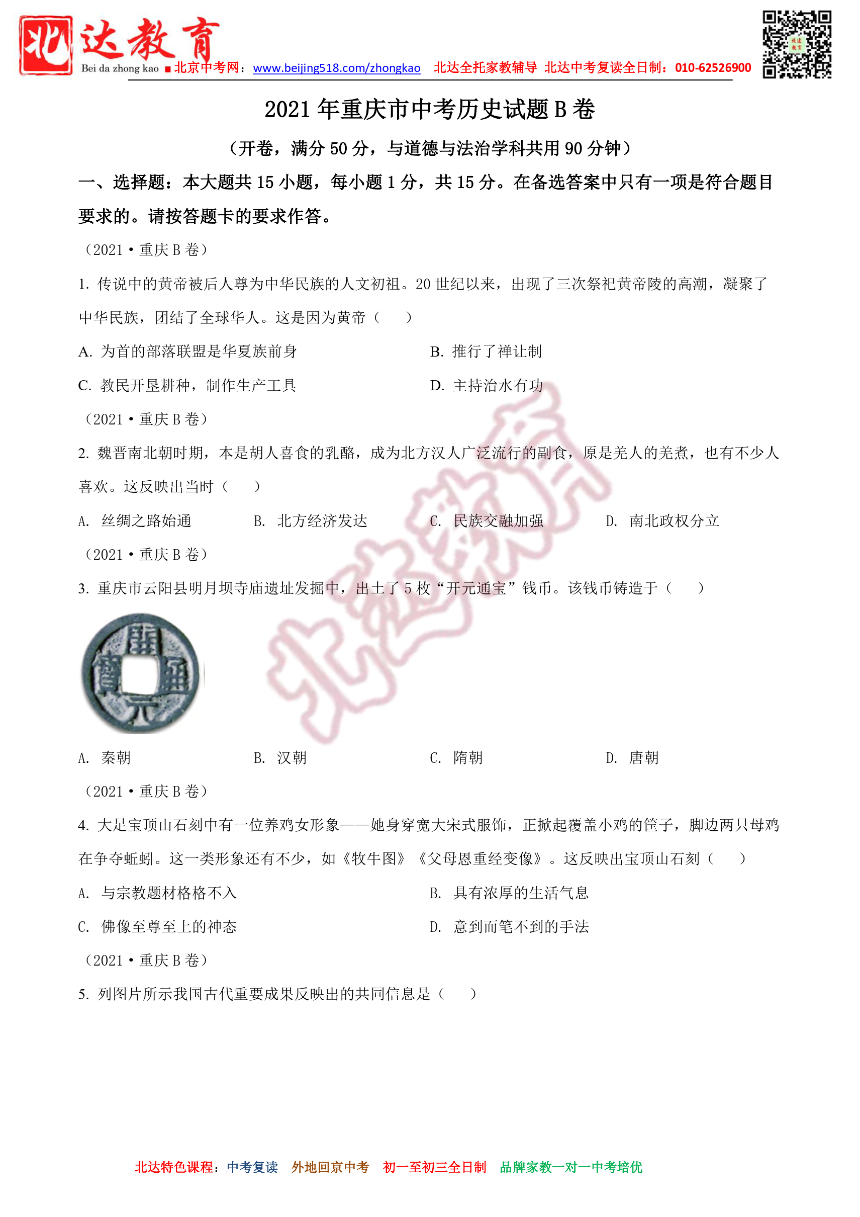 2021年重庆中考历史试题及答案汇总。admw360教研组收集整理,分享给大家。